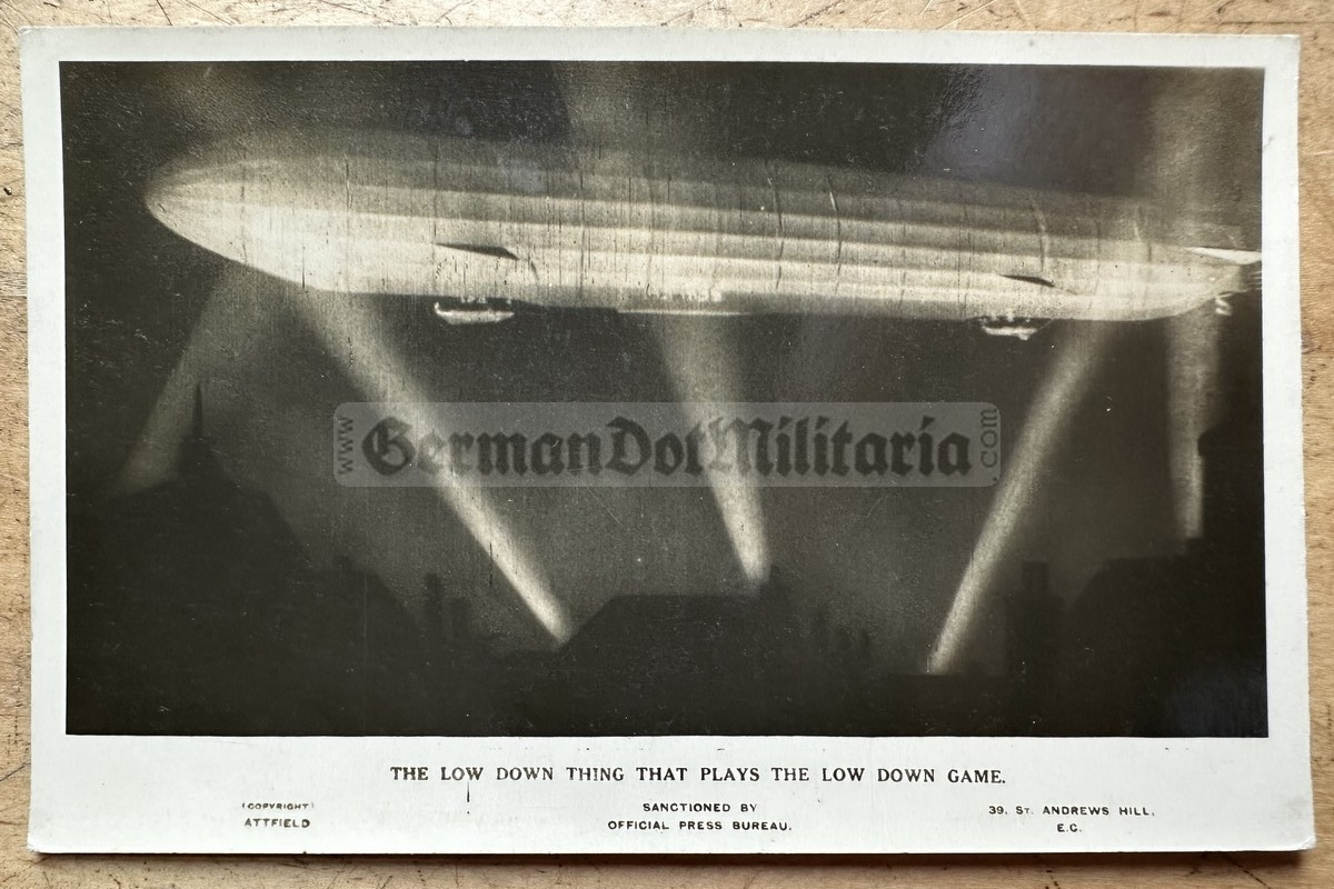 aa326 - British WW1 anti-German propaganda postcard - Zeppelin Airship L248 over London before being shot down