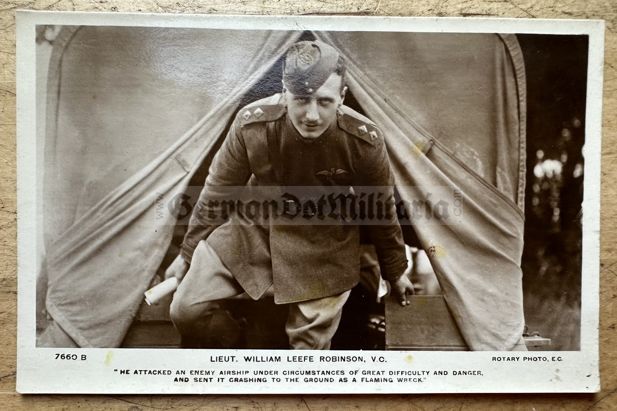 ab042 - British WW1 postcard - RFC flying ace William Leefe Robinson VC, who shot down 1st German Zeppelin Airship at Cuffley in September 1916