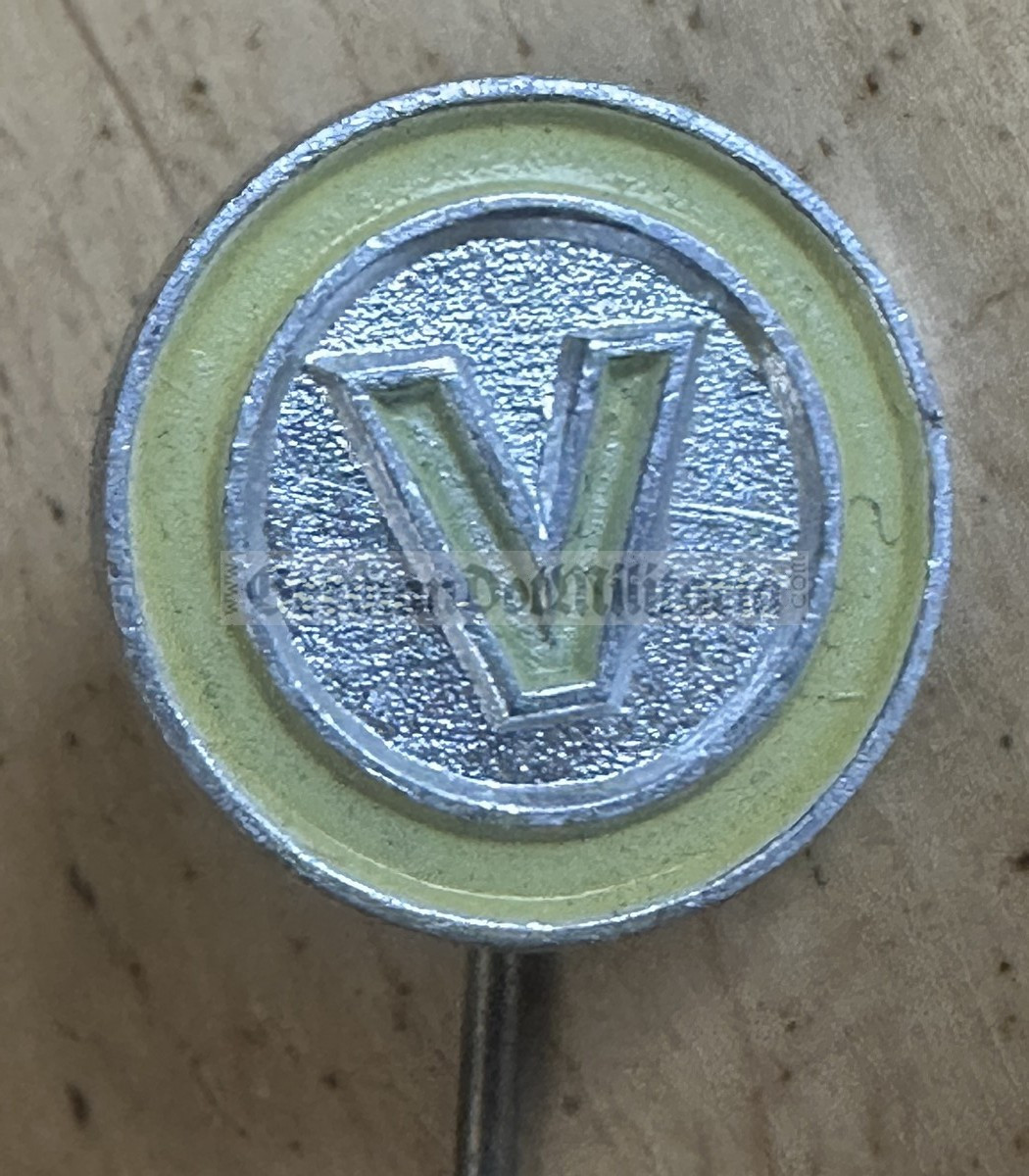 Stasi agents did not necessarily know eachother when working out in the field and these types of badges were made in different colours for use by the Stasi on undercover plain clothes missions. What type of badge and what colour to wear would have been ordered just before going on a mission. I may have more than one of these in stock, but the one that you'll receive will be in equal or better condition than the one shown. The shield measures 1/2" in diameter.