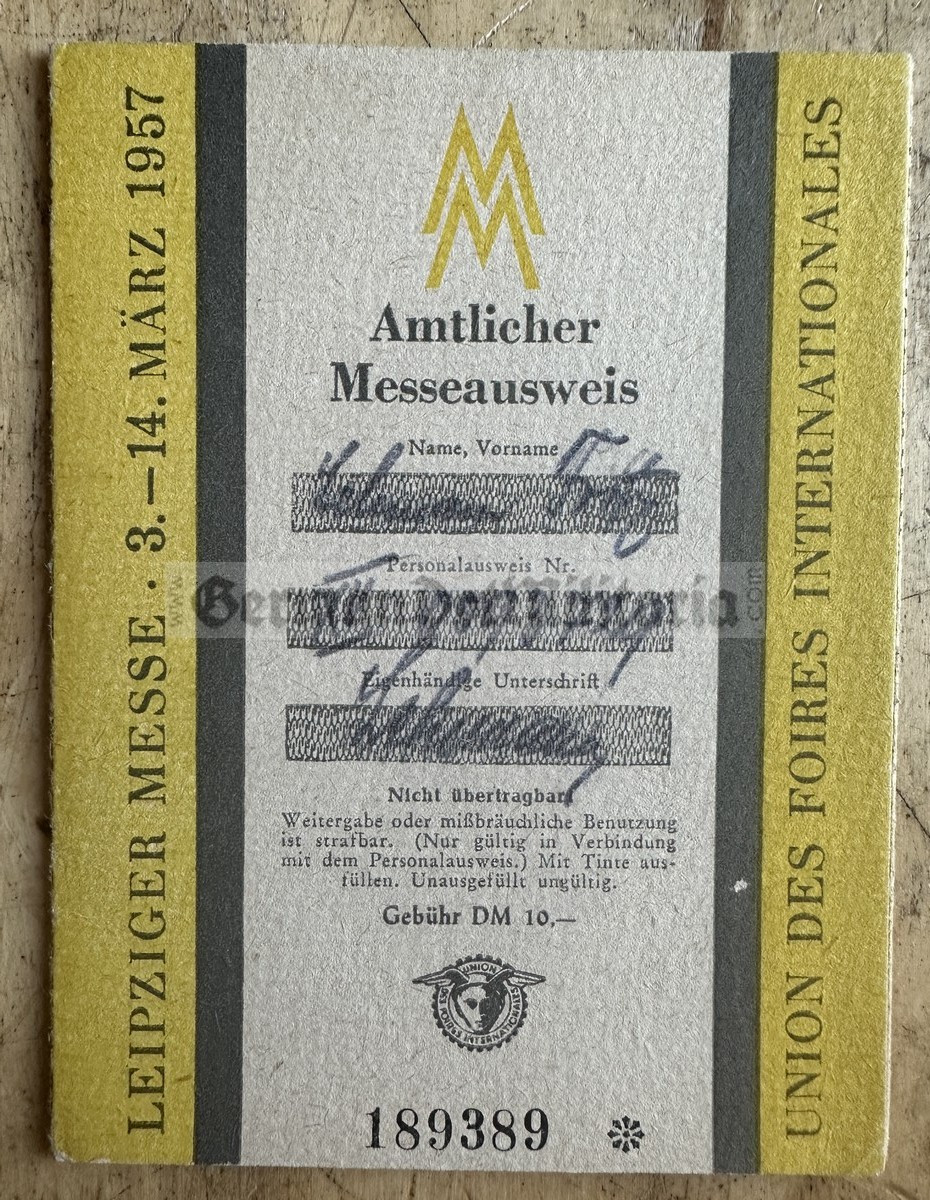 ac635 - c1957 Leipziger Messe - Leipzig Trade Fair - Entry ticket ID for official traders