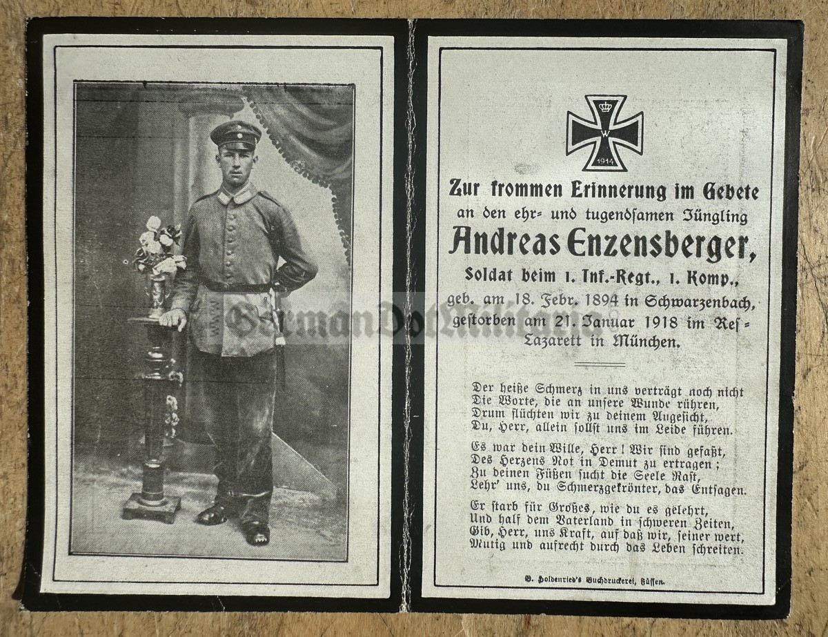 dc007 - c1918 German WW1 death card - 1st Bavarian Infantry Regiment 1st Company - Andreas Enzensberger