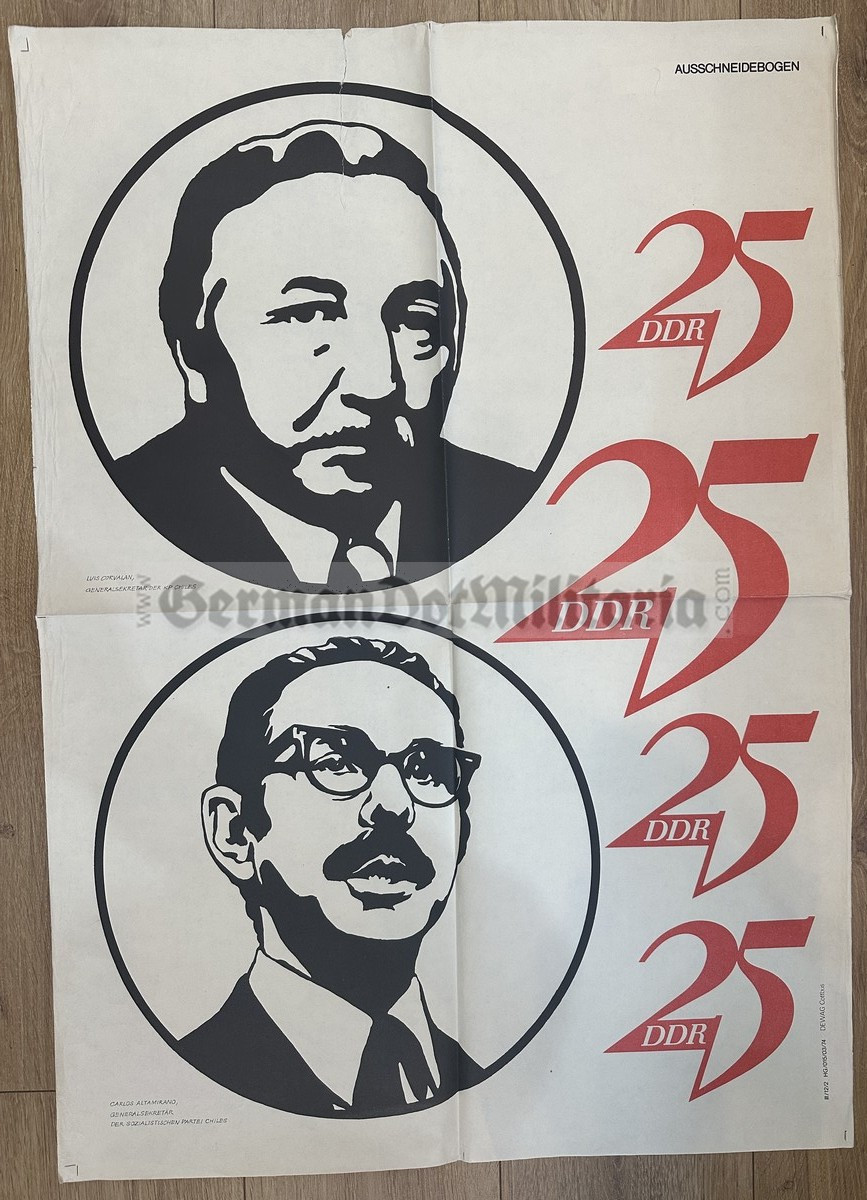gw100 - c1974 very large original East German propaganda poster - 35th anniversary of the DDR & solidarity with Chile - 33" x 23"