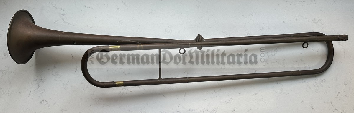 Used condition. Unpacked weight is more than 0.57kg. The kink in it might be on purpose as the rear part is bent up by design. No mouthpiece. Last sample photo shows similar in use in the DDR and this one came to me from East Germany.