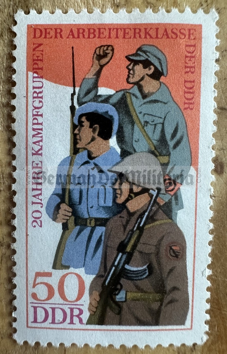 Click the button below to add the od132 - East German postage stamp - c1973 20th years anniversary Kampfgruppen to your wish list.