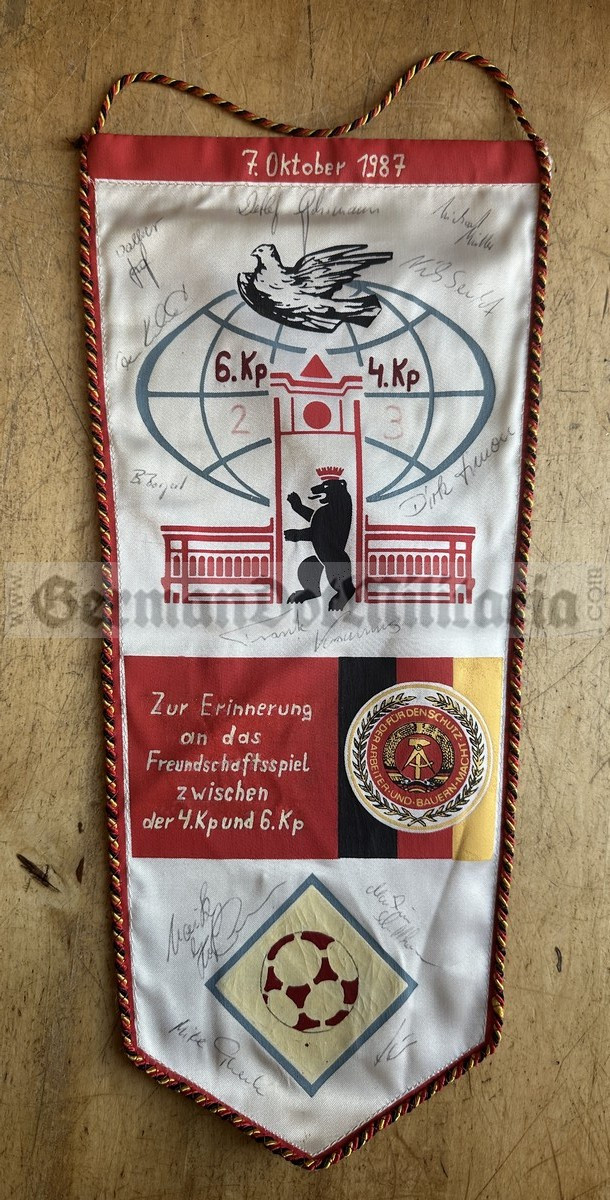 Click the button below to add the oo028 - c1987 Berlin Wachregiment or Grenztruppen football game between 4th and 6th Company with signatures - large Wimpel Pennant to your wish list.